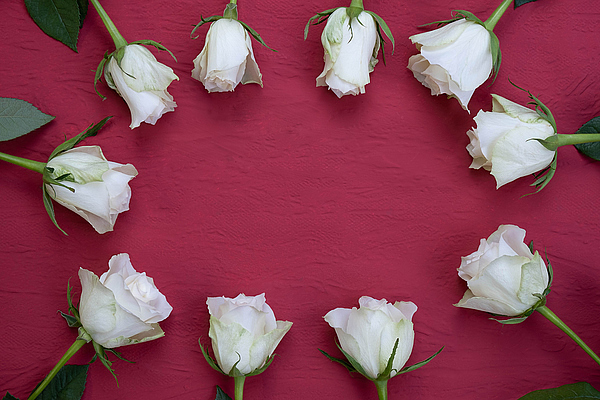 Close up of female and male hands holding red rose. Bearded man kissing his charming girlfriend